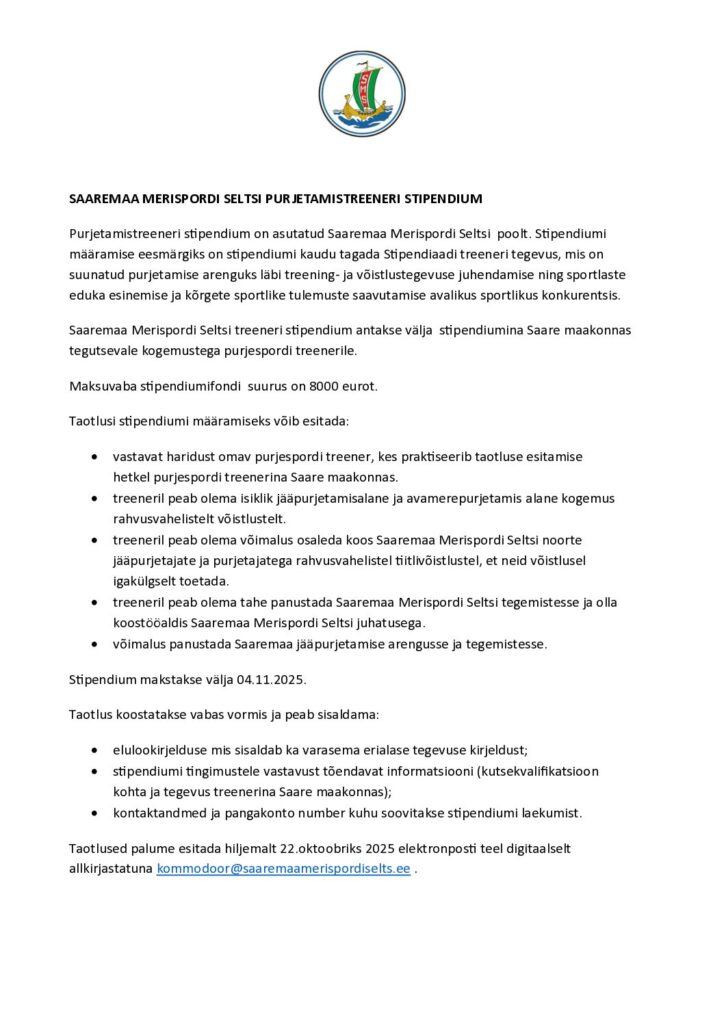Purjetamistreeneri stipendium 2025by AiriPurjetamistreeneri stipendiumKinnitatud juhatuse koosoleku protokolli ja juhatuse otsusega 06.10.2025 nr 7